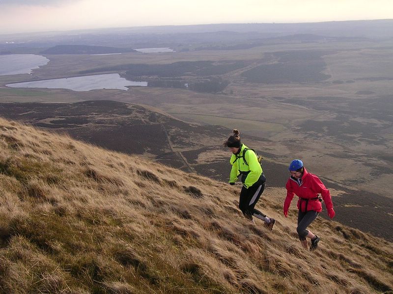 Climbing West Lomond - Val and Cat