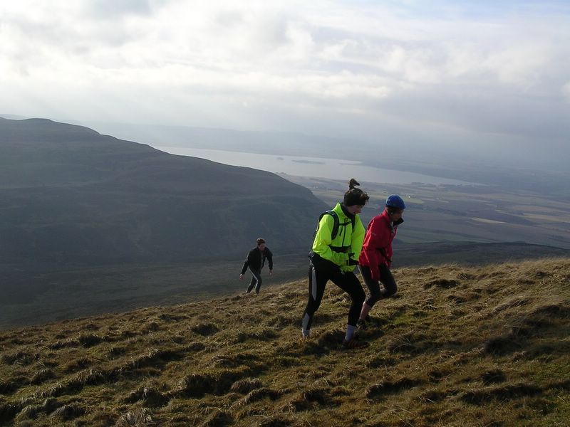 Approaching West Lomond summit - Val, Val and Cat